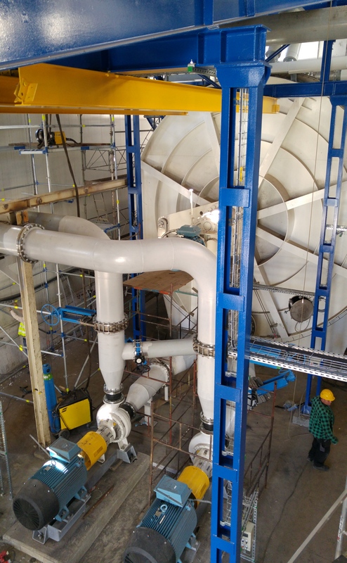 Na zdjęciu widać nowy dyfuzor wieżowy ze ślimakami odbioru wysłodków.