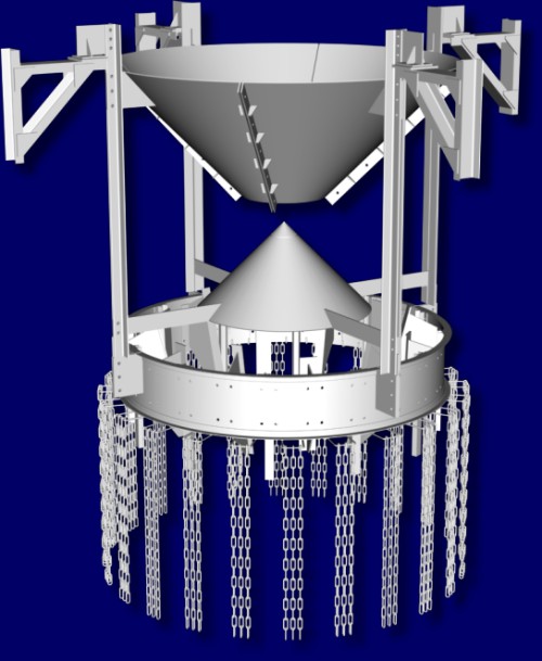 Zamontowane w piecu wapiennym urządzenie do rozprowadzania wsadu,